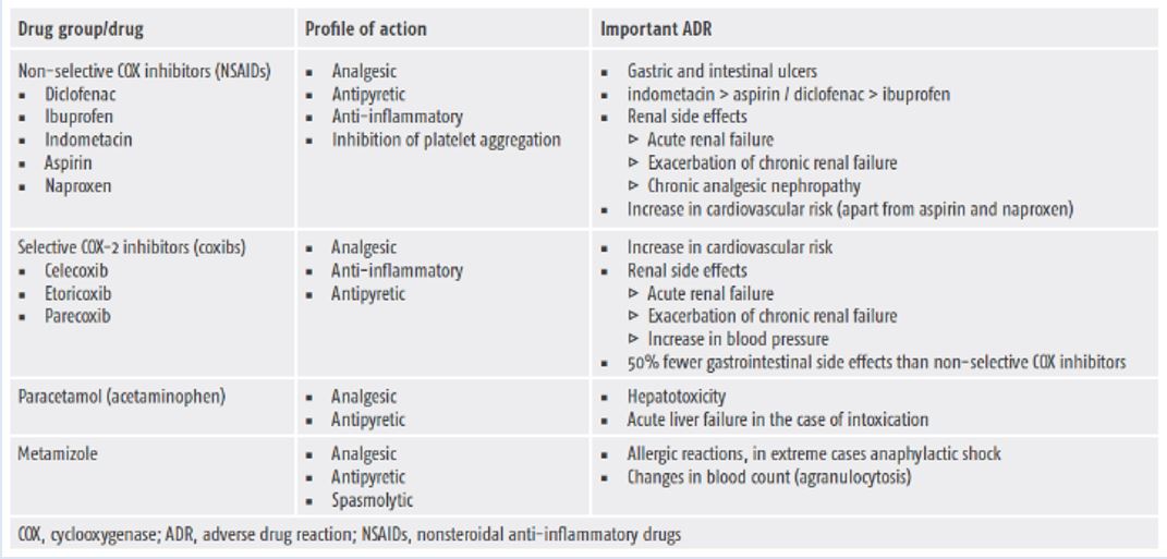 ⦁ יותר תופעות לוואי משמעותיות ב־NSAIDs ביחס לאופטלגין